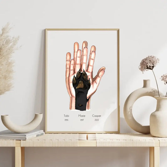 "Familienglück mit Kind und Haustier" im Aquarell Stil - Personalisiert