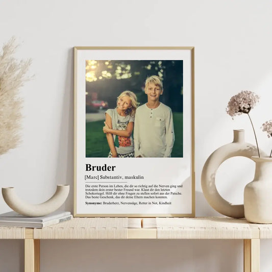Zeige Deine Geschwisterliebe mit unseren personalisierten Postern. Wähle aus verschiedenen Designs und gestalte ein Poster, das Eure Verbundenheit und gemeinsamen Erinnerungen widerspiegelt. Jedes Poster wird auf hochwertigem Papier gedruckt und ist in verschiedenen Größen erhältlich. Ein besonderes Geschenk für Deinen Bruder oder Deine Schwester. ❤
