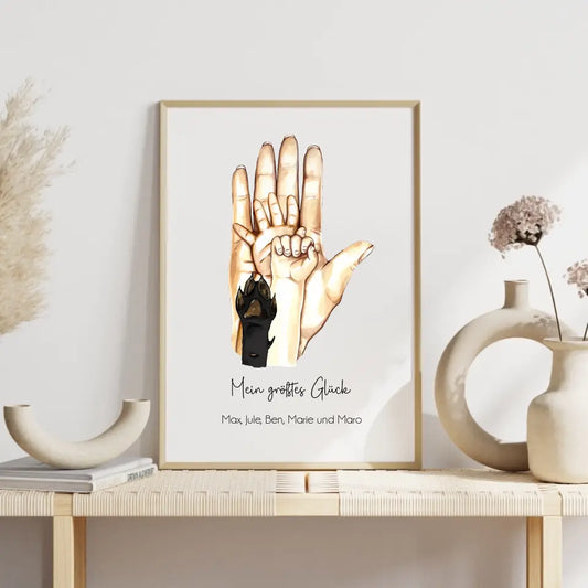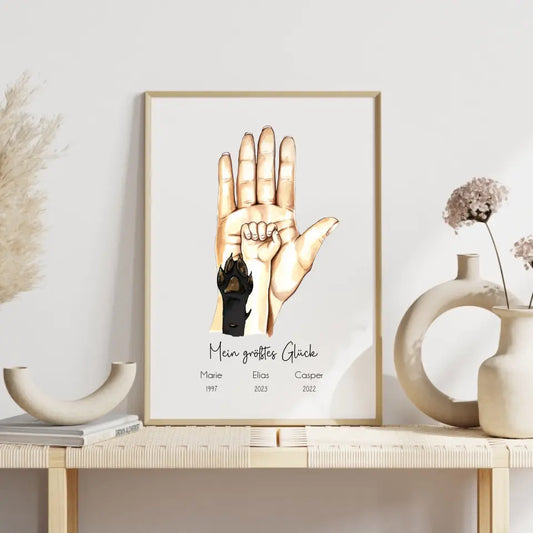 "Familienglück mit Kind und Haustier" im Aquarell Stil - Personalisiert