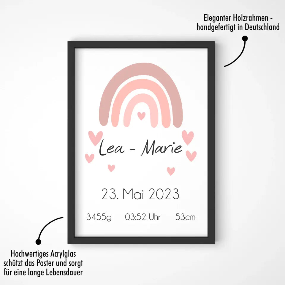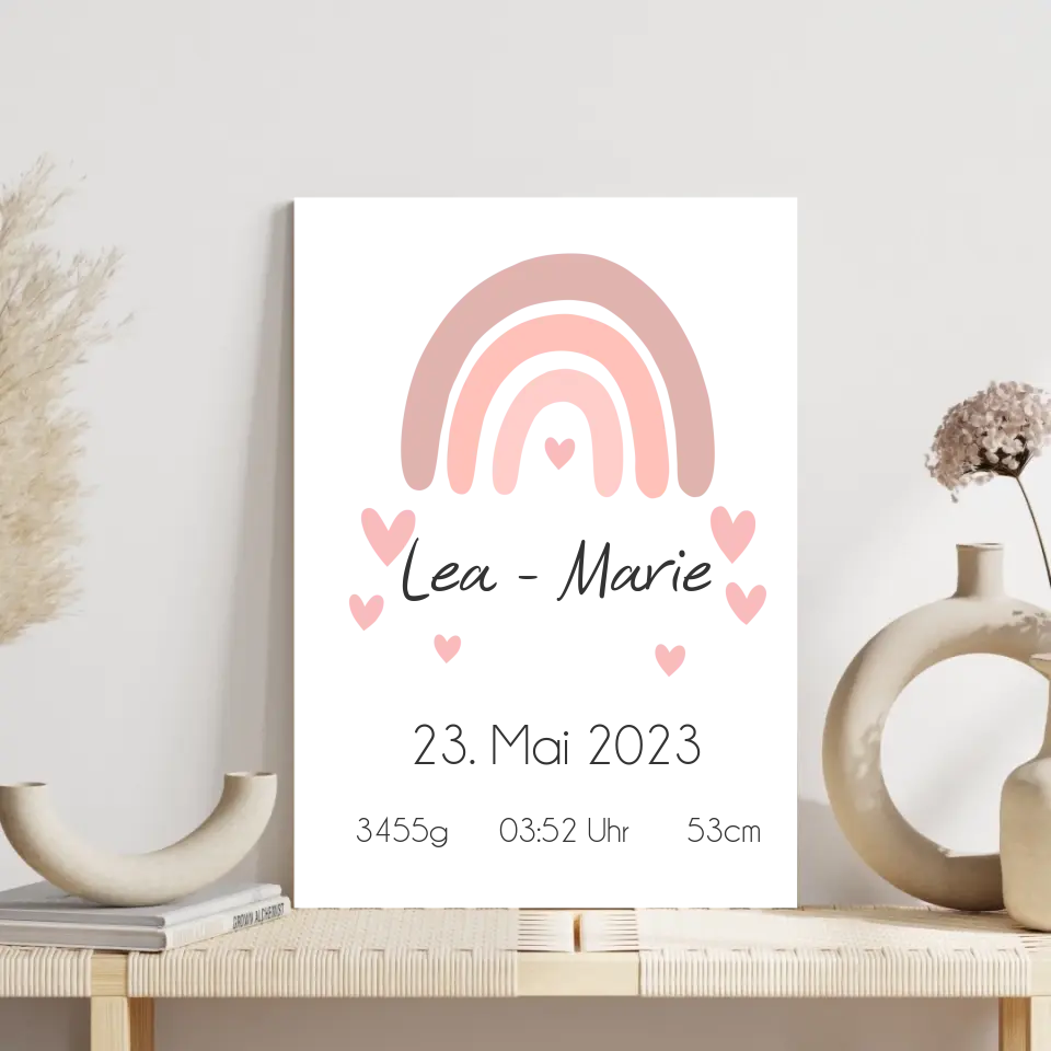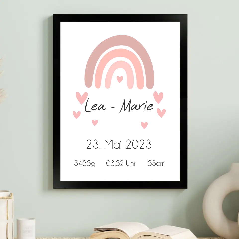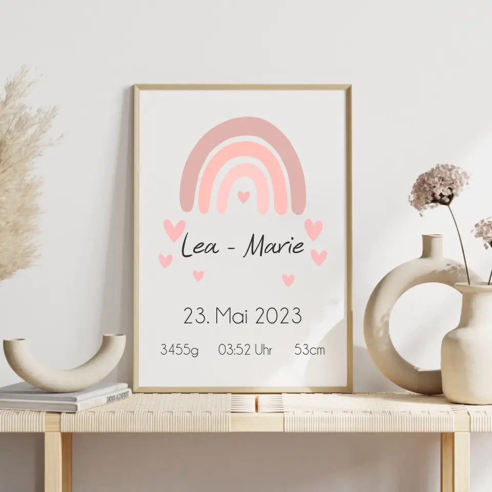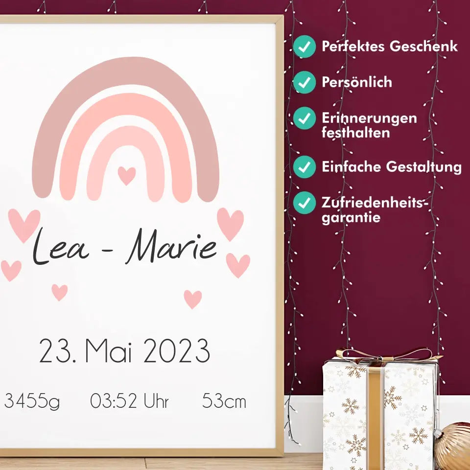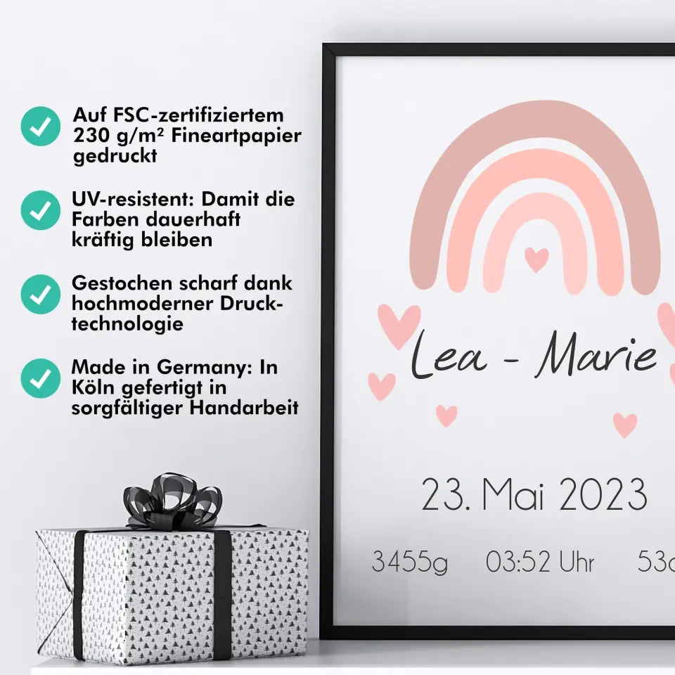 Ein personalisiertes Geburtsposter hält den Moment fest, in dem aus Liebe ein Leben wurde.