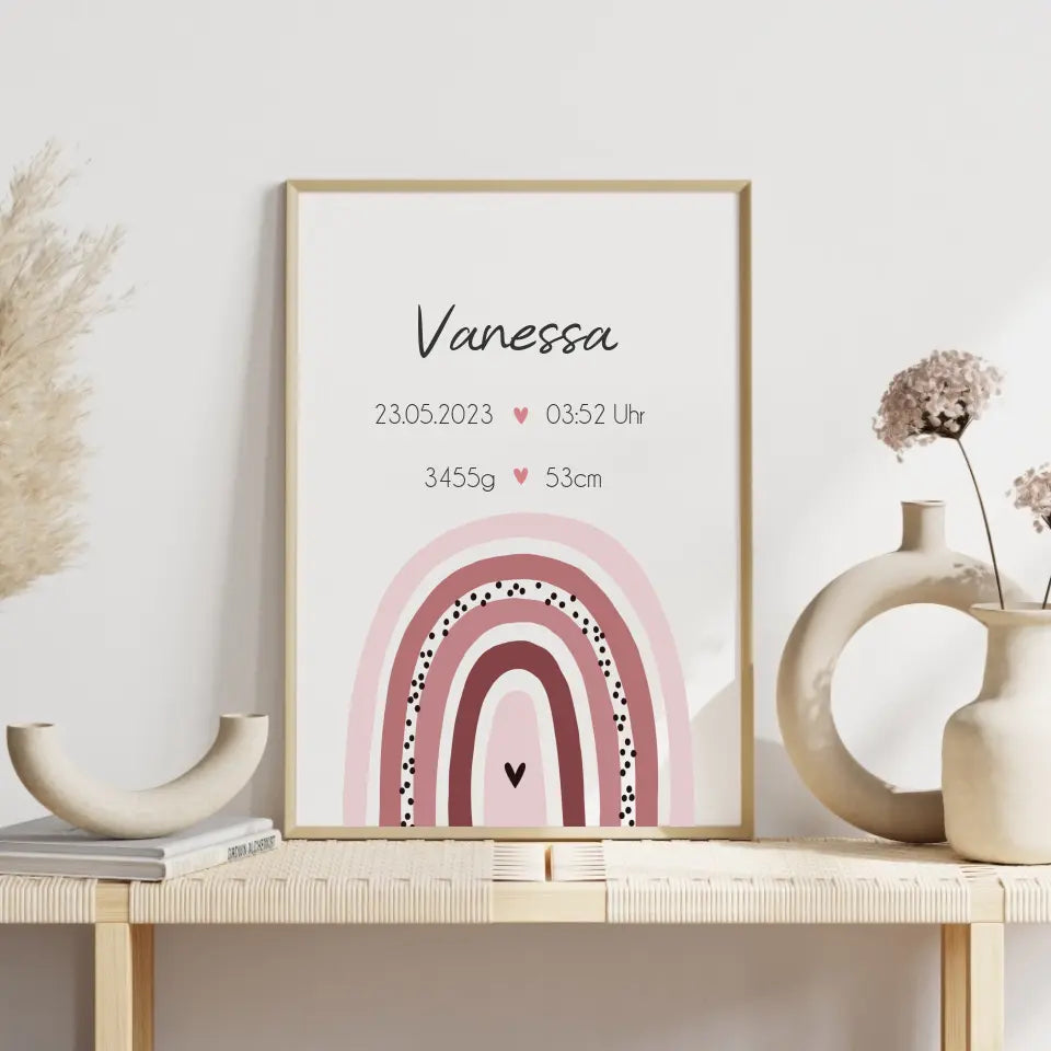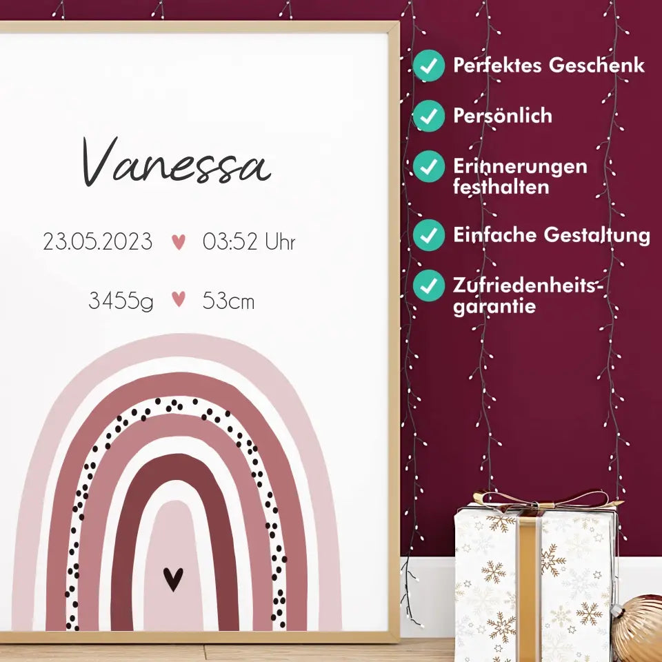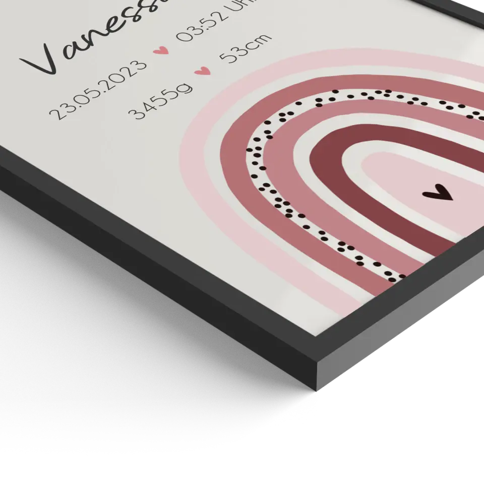 Ein personalisiertes Geburtsposter hält den Moment fest, in dem aus Liebe ein Leben wurde.