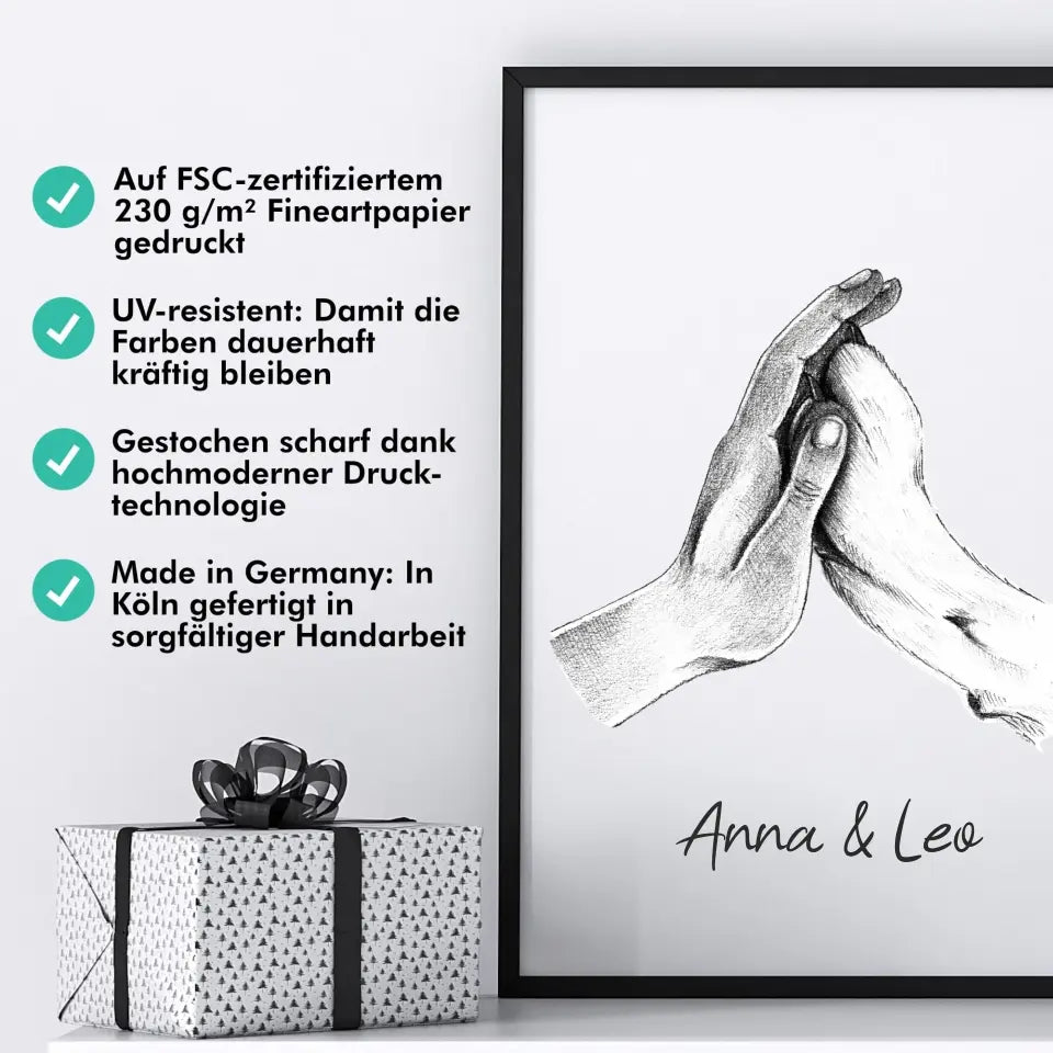 Wir verwenden nur die besten Materialien, um sicherzustellen, dass Du und Deine Liebsten lange Freude an dem personalisierten Poster haben werdet.